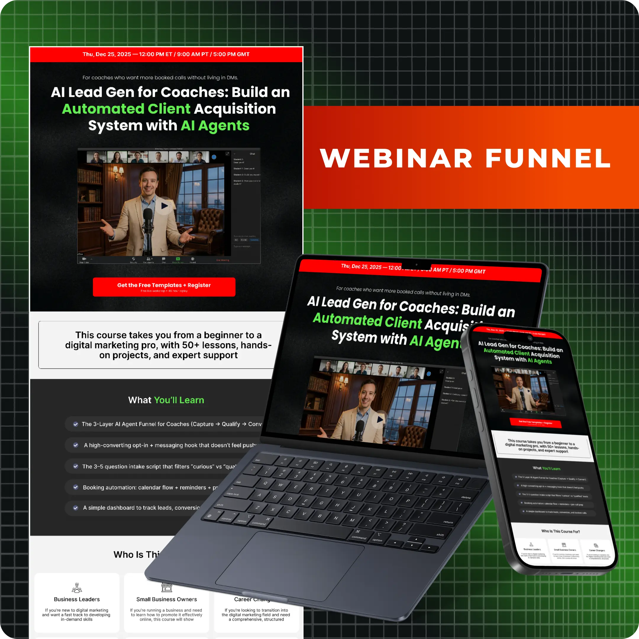 Coaches, consultants, experts, and service-based business owners who want a funnel that looks premium, communicates value fast, and converts consistently.